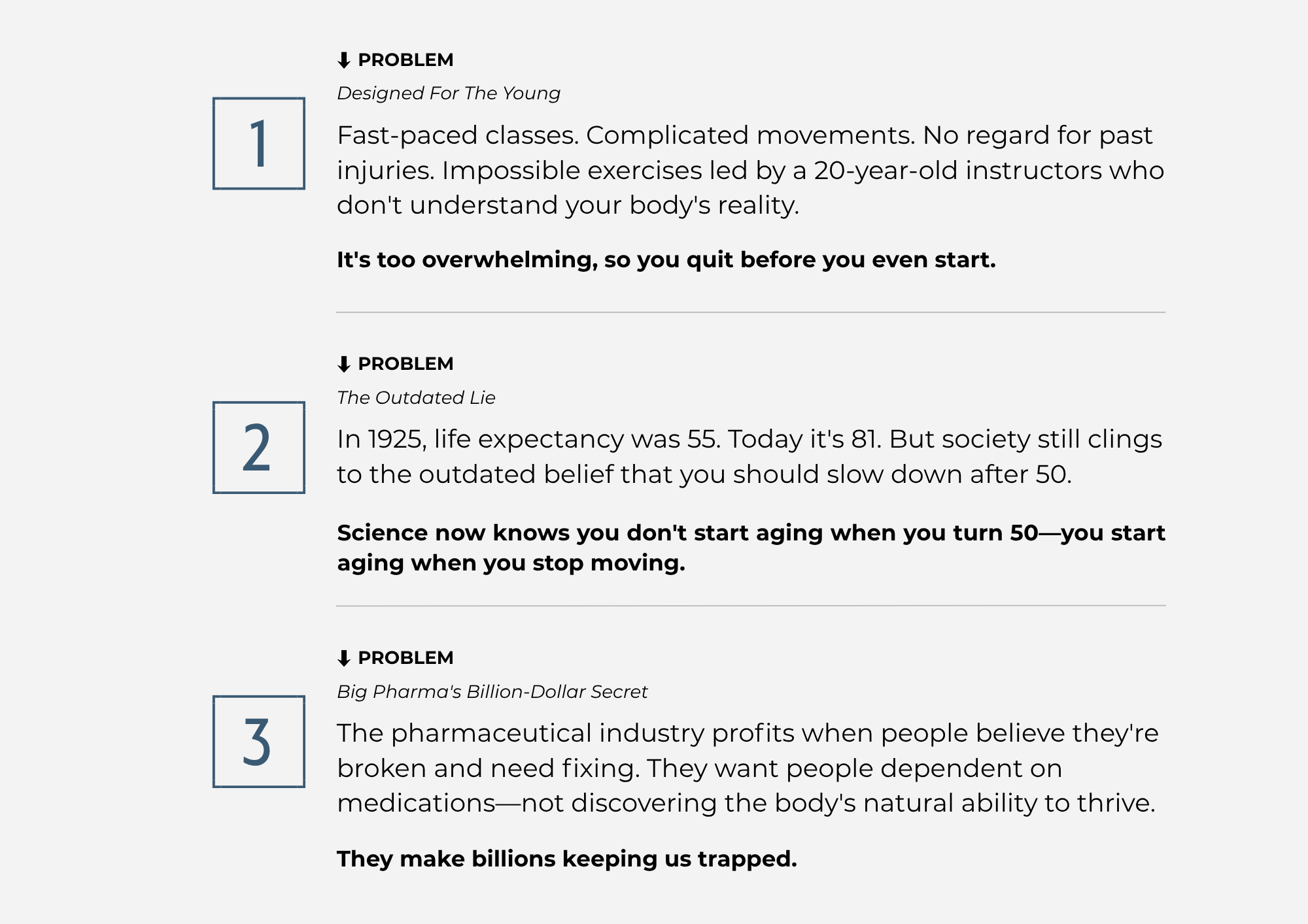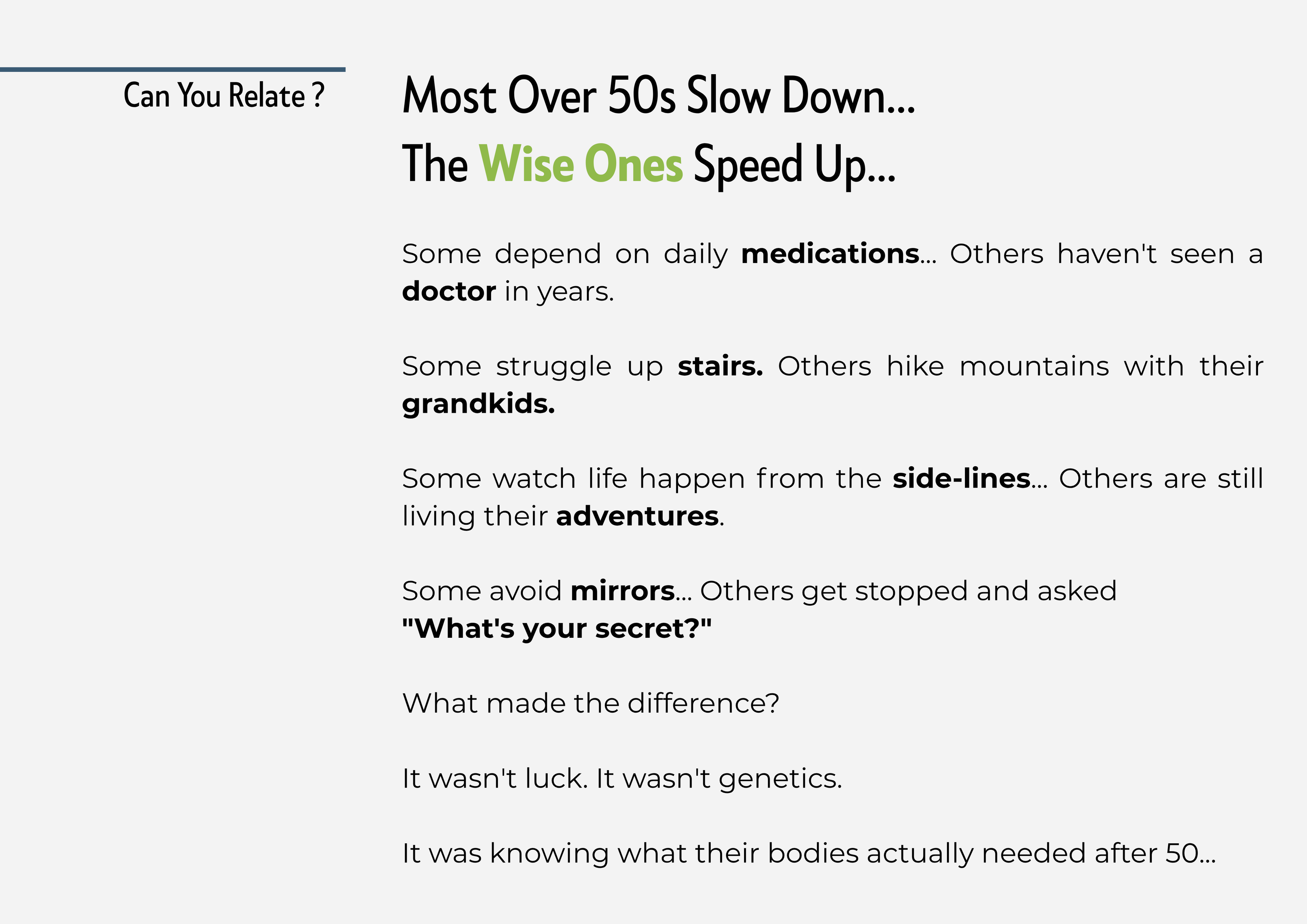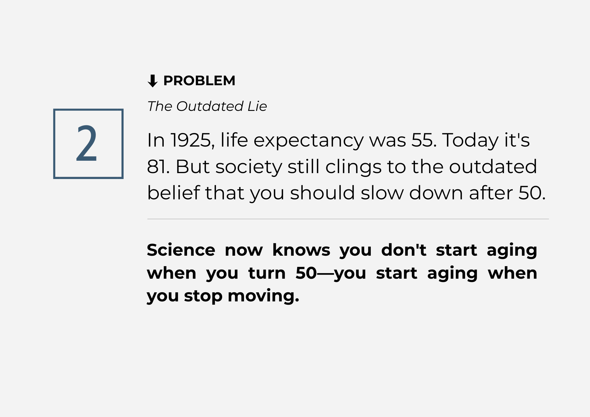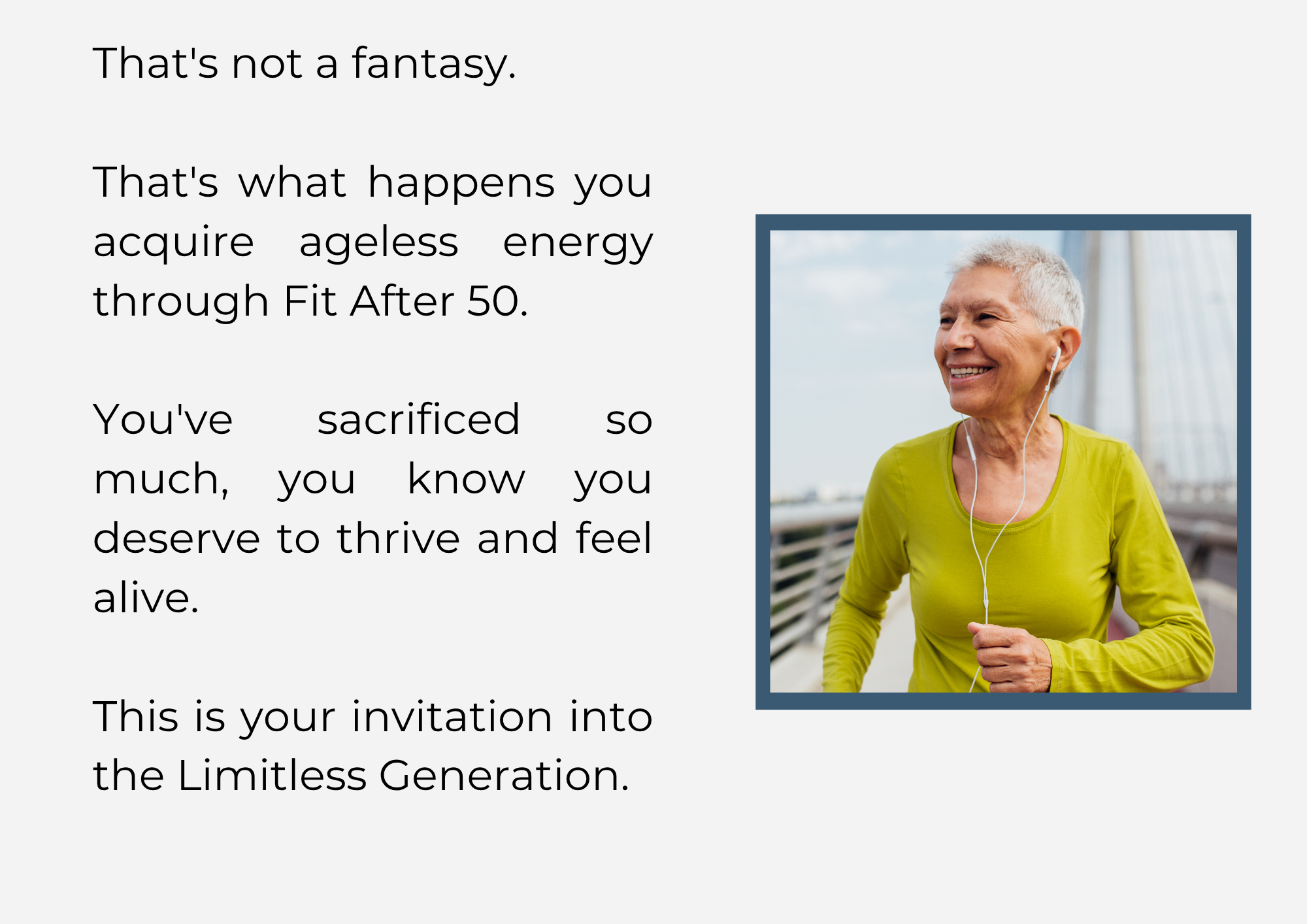 Join 100,000+ people over 50 who got their energy, strength and independence back with a personalised program that turns exhaustion into energy in days and stiffness into strength in weeks.